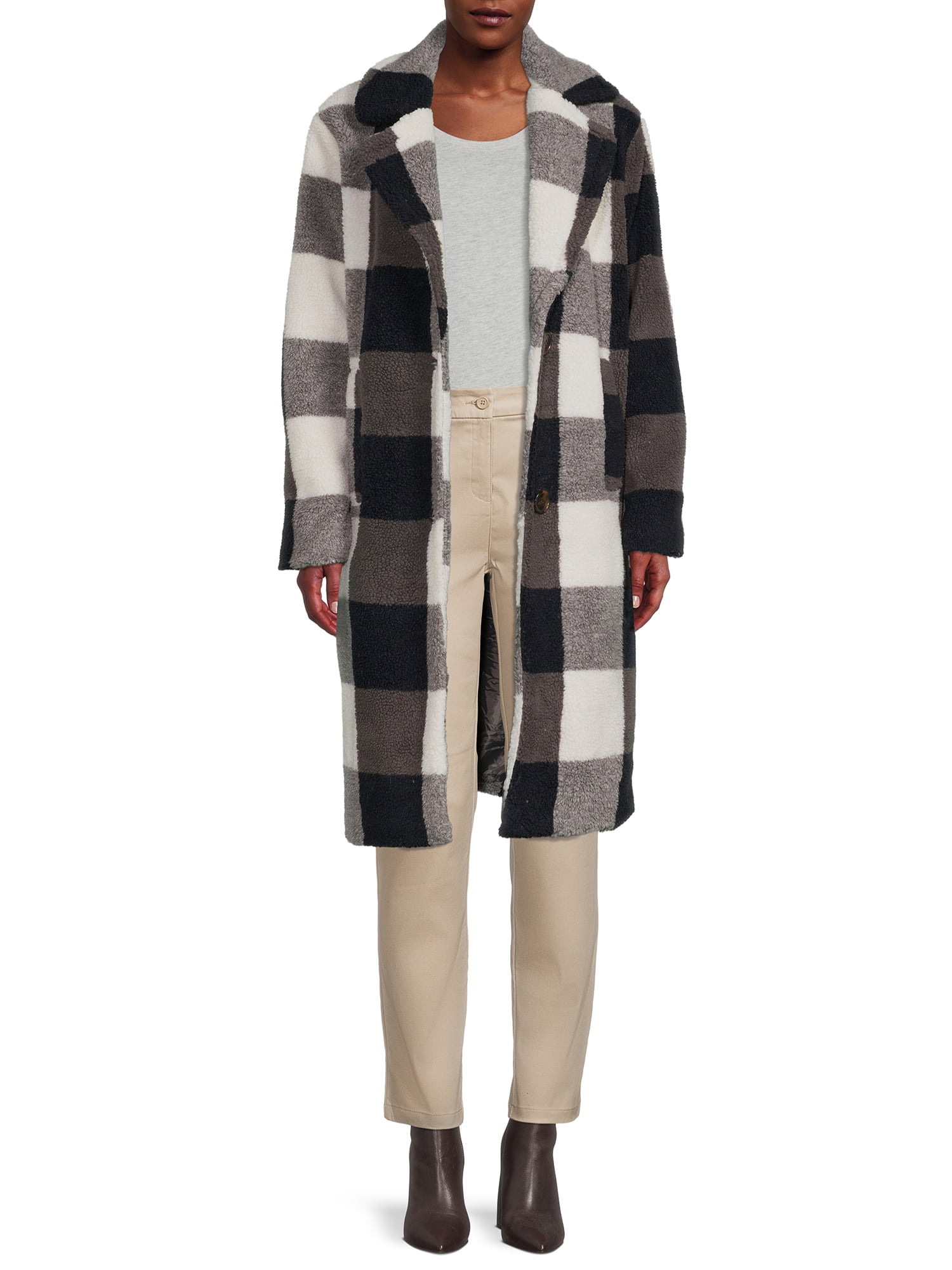 Jason Maxwell Women S Oversized Faux Sherpa Plaid Coat Walmart Com